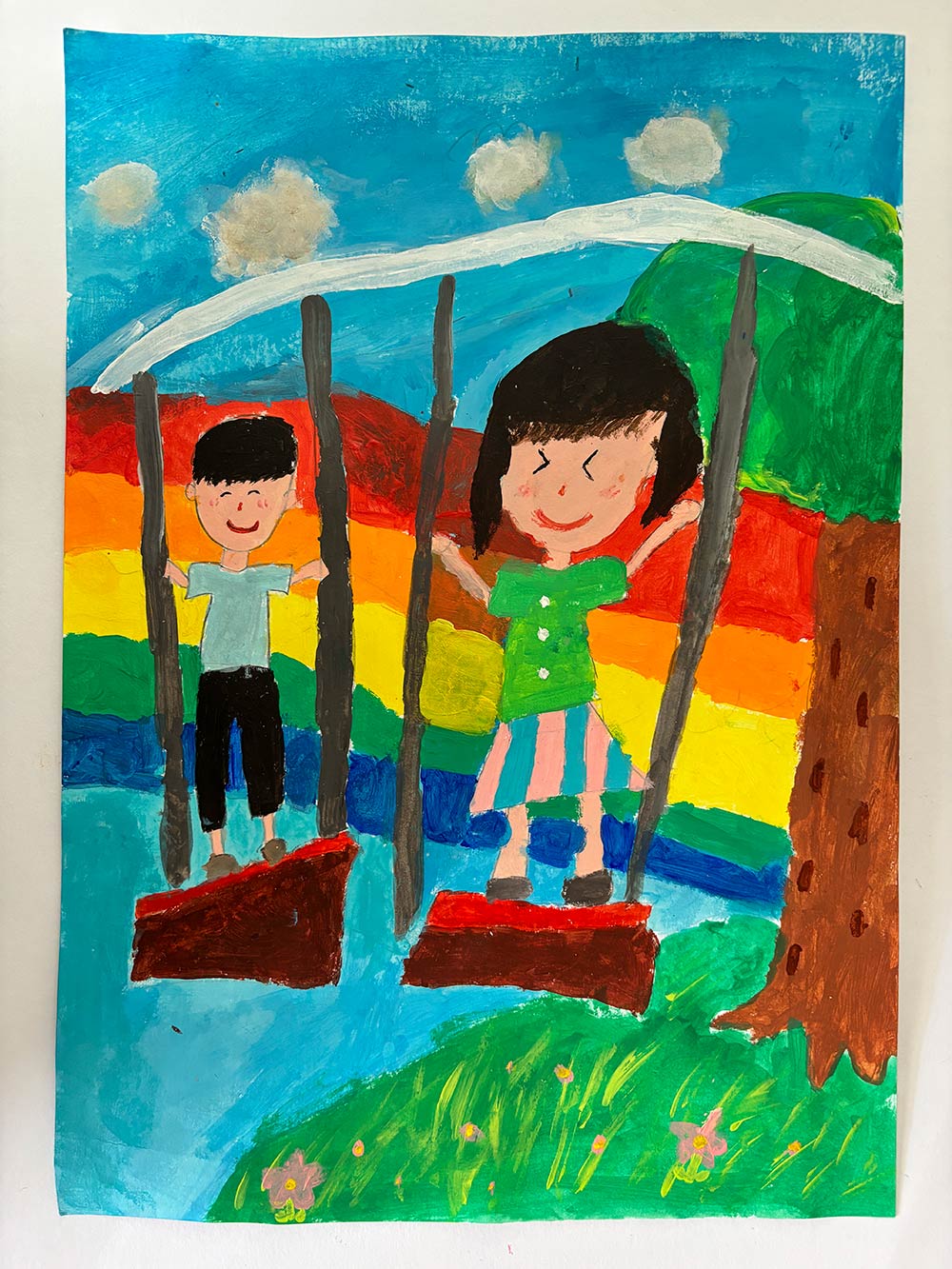 空にうかんでブランコに立って友達と