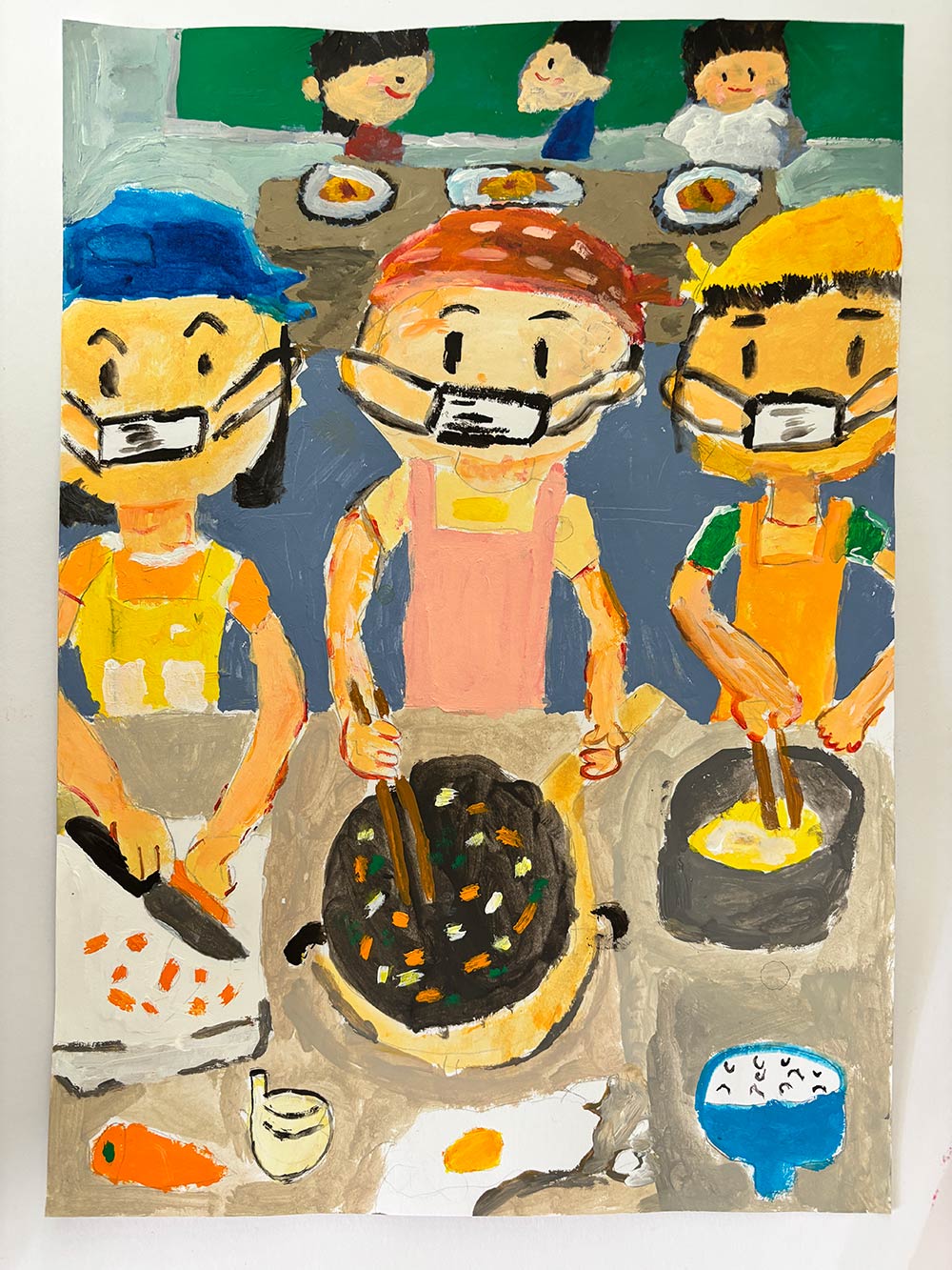 家庭科でチャーハンを作っているところです。食べるのが楽しみで、ワクワクしている気持ちです!
